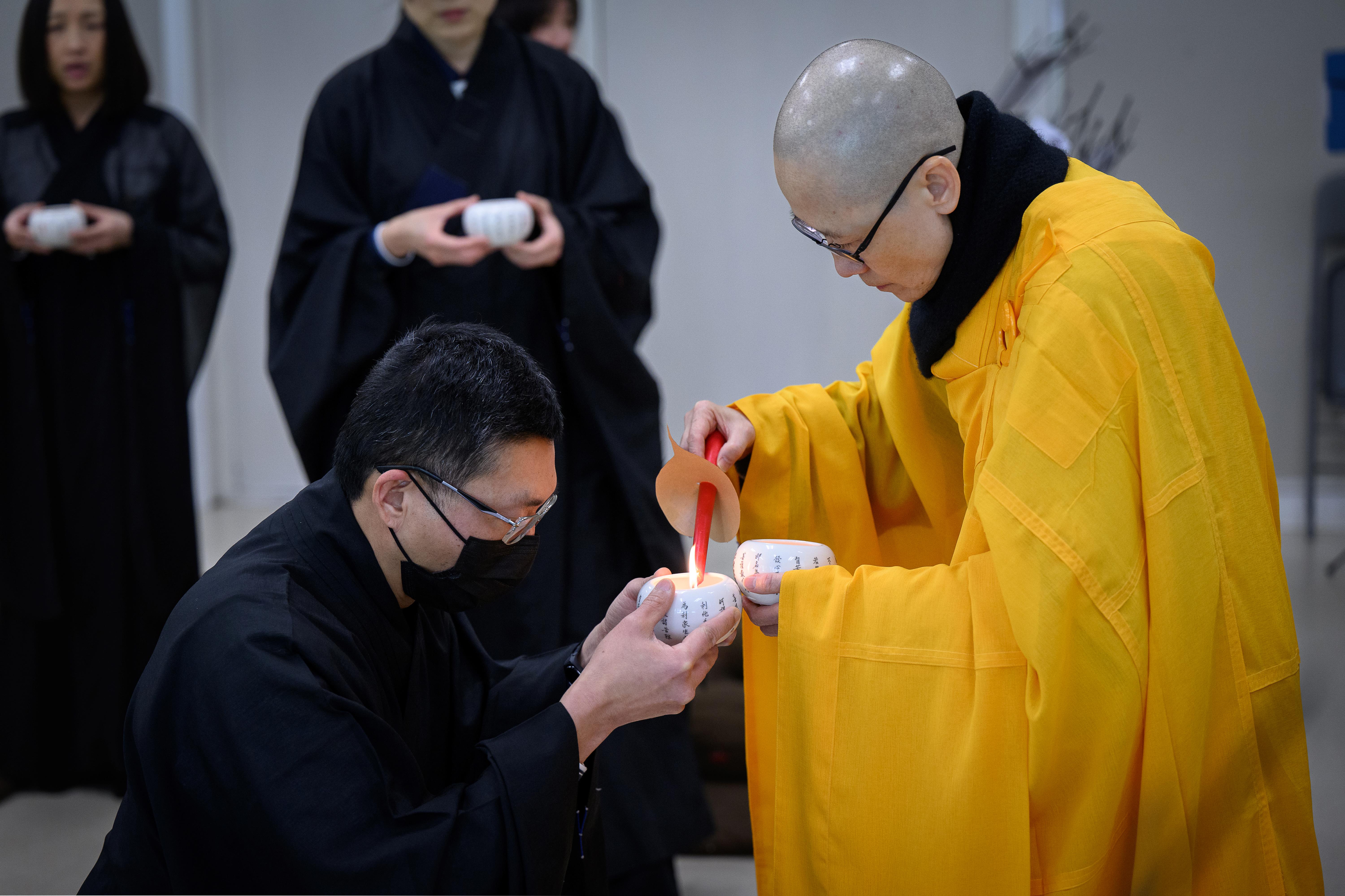 現場的與會眾中只有3位曾親自見過師父,但不管見過師父與否,師父對弟子們的影響深遠流長,是大家學佛路上的明燈。傳燈法會開始後,大眾依序出位領燈,點亮的一盞盞燈,照亮道場,也照亮所有的與會大眾,堅定學佛修行的方向與自利利人的願心。