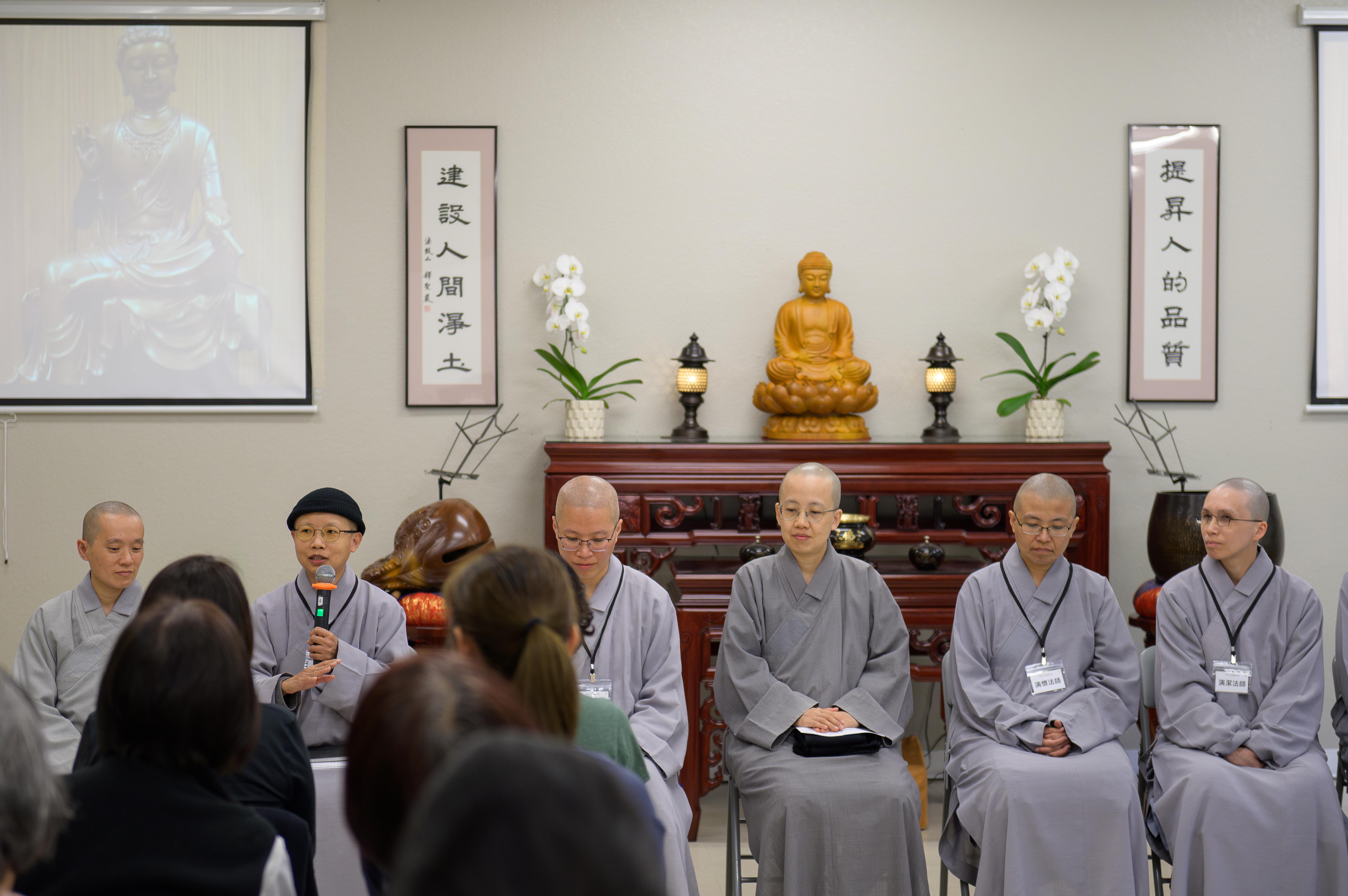 活動下半場是Q&A時段,法師們一一回覆信眾們的問題,法師們的回答涵蓋了禪修、因緣觀、以及身為佛教徒不是以高標準壓抑否定自己,而是認識、接受自己的不足,察覺自我的身心。法師們很真誠的回答,舉了很多自身體驗的例子,信眾們聽得專注,不時點頭,也不時會心一笑。會後許多菩薩回饋,法師們的分享很貼近在家人的經驗,讓人很有共鳴,值得細細深思。