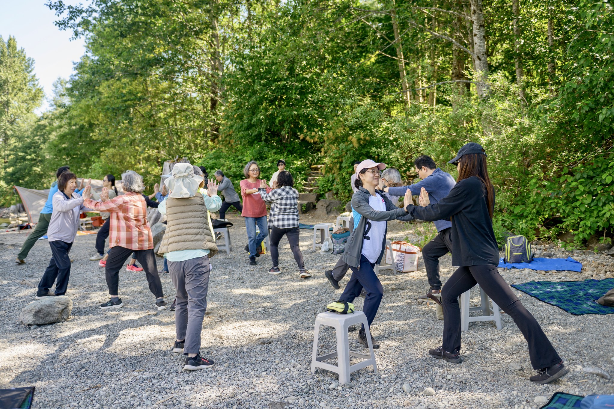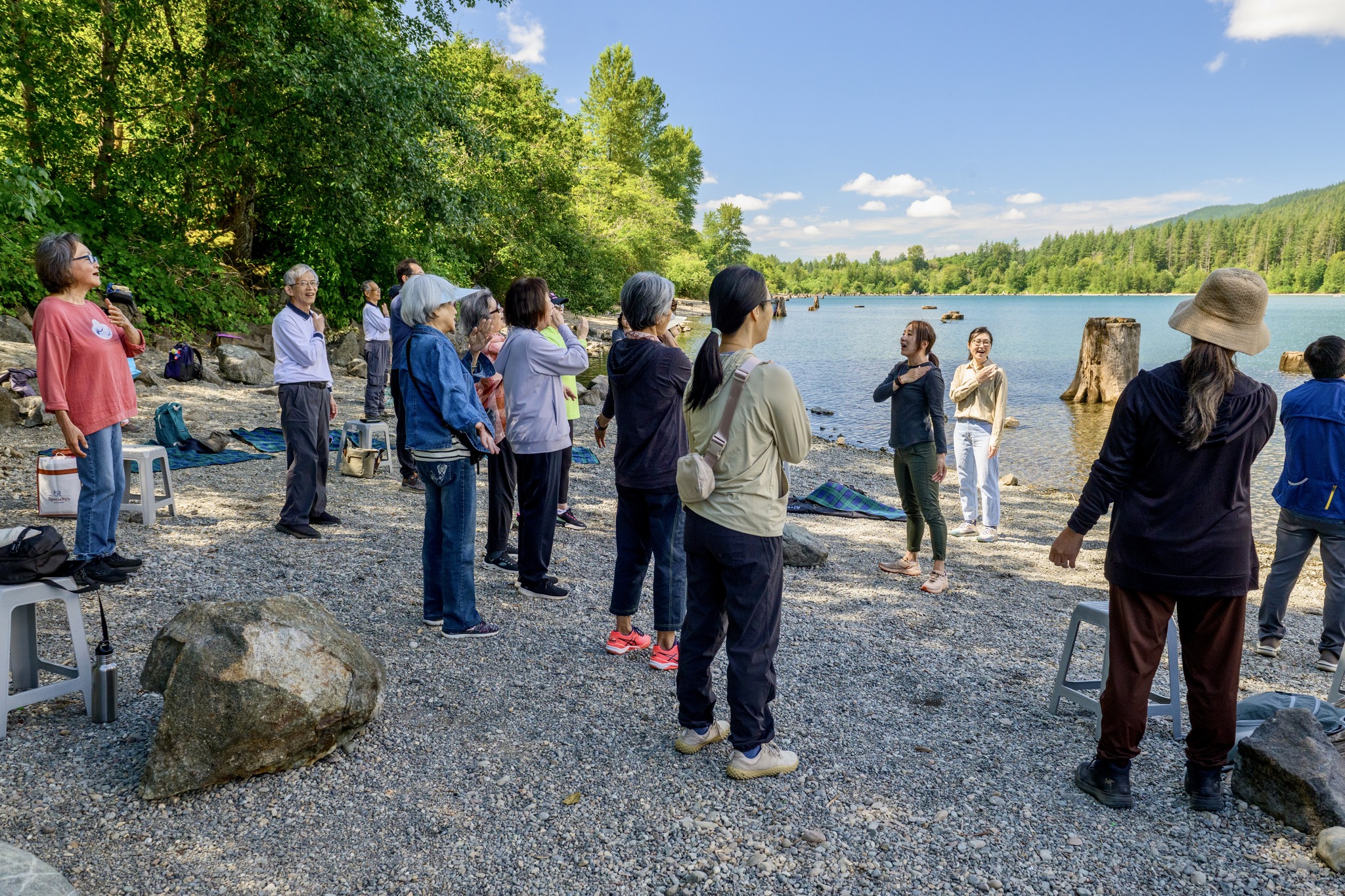 7月27日,法鼓山西雅圖分會於依山傍水的Rattlesnake Lake舉辦「山水禪」活動,三十多位菩薩迎著夏日暖陽,走入青山碧湖,共同體驗放鬆身心的安然與喜悅。